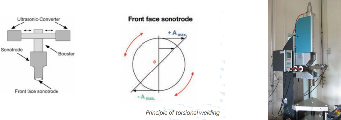 B.工作振動(dòng)模式:①扭轉(zhuǎn)振動(dòng)模式。目前這種模式為瑞士telsonic專(zhuān)有,用于環(huán)狀焊接是其特有優(yōu)勢(shì),telsonic也將扭轉(zhuǎn)模式應(yīng)用于線+端子上了。扭轉(zhuǎn)振動(dòng)模式的振動(dòng)系統(tǒng)結(jié)構(gòu)較復(fù)雜,故大多數(shù)情況下需多個(gè)換能器組合。